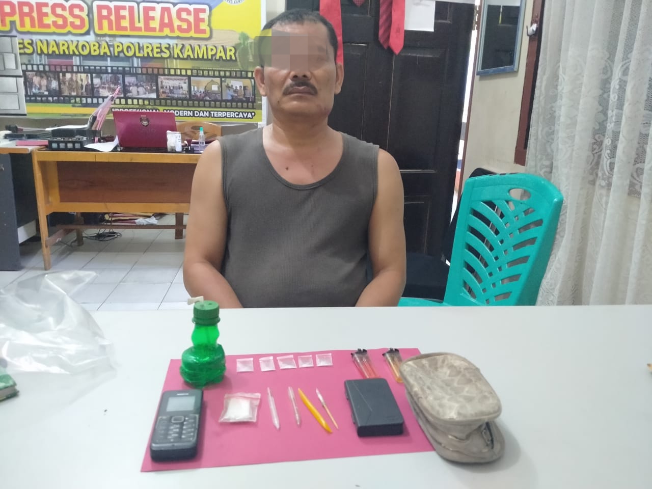 Dari tersangka ini didapatkan barang bukti 5 paket narkotika jenis shabu seberat 1,45 gram, sebuah timbangan digital dan sejumlah peralatan penggunaan shabu, selanjutnya tersangka dan barang bukti dibawa ke Polres Kampar untuk dilakukan pemeriksaan lebih lanjut.