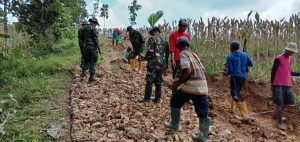 TNI dan Warga Bergotong Royong Dalam Kegiatan Fisik TMMD Reguler Ke -104 Desa JurangJero