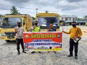 Personil Polsek Pangkalan Kuras Sosialisasi Saber Pungli ke Supir Truk
