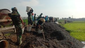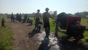 Terus Bahu Membahu di Pengecoran Jalan TMMD