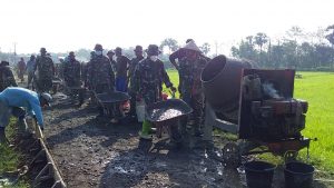 Semangat Anggota Satgas TMMD Dalam Pengecoran Jalan