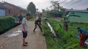 Wujudkan Lingkungan Bersih dan Peduli Terhadap Kesehatan, Babinsa Sukamulya Koramil 418-08/Sako Bergotong Royong Bersama Warga