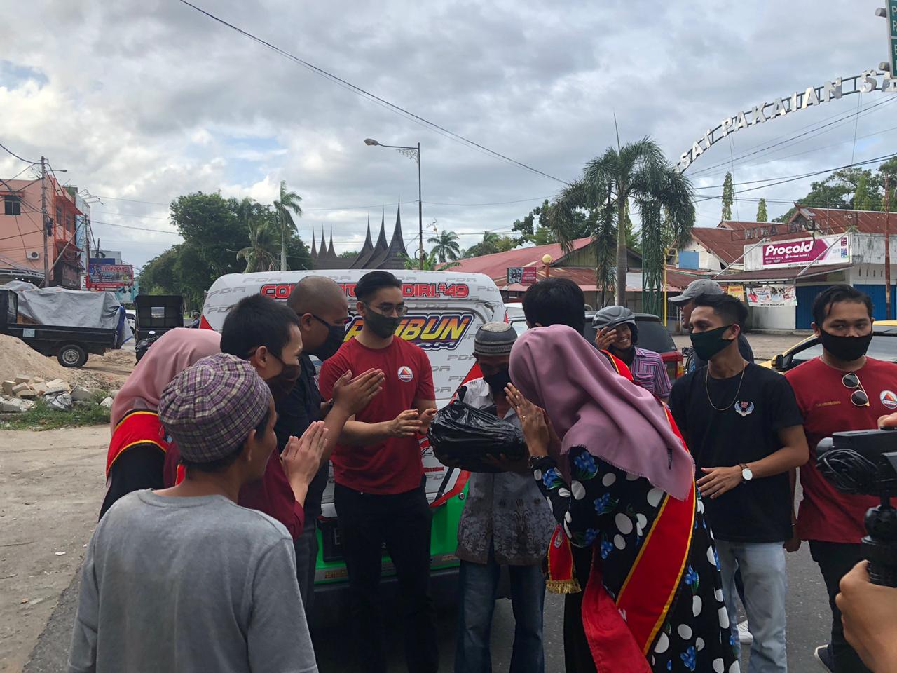 Aksi pembagian sembako dilakukan di beberapa titik. Sementara, khusus untuk masker dan takjil dibagikan di Bundaran Masjid Raya Sumbar.