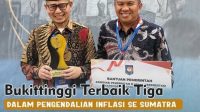 Wali Kota Bukittinggi Erman Safar, yang didampingi Kadis Perdagangan dan Perindustrian Wahyu Bestari, Ketua LPM MKS Yundri Refno Putra,