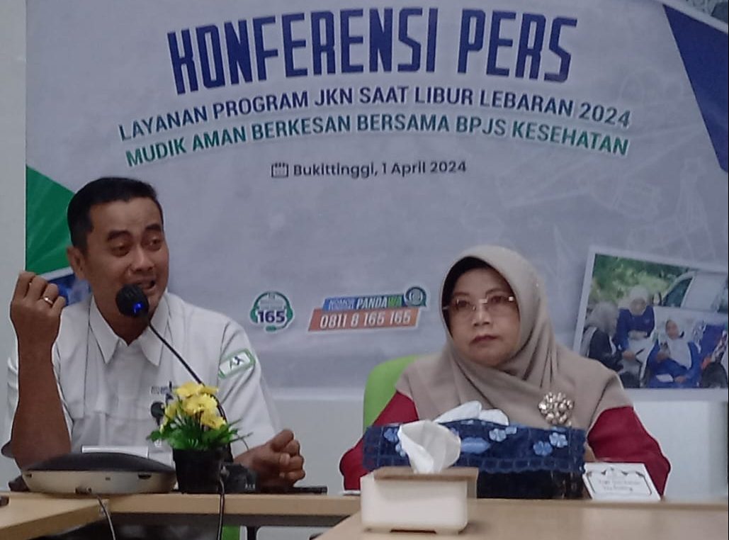 dalam Jumpa Pers yang di adakan di kantor BPJS Jalan Hamka Bukittinggi Kepala BPJS kesehatan Bukittinggi Haris Prayudi, SKM mengatakan peserta JKN dalam mendapatkan pelayan di rumah sakit-rumah sakit saat ini tidak perlu lagimembawa kartu yang diperlukan, sekarang ada pelayanan dari peserta Badan Penyelenggara Jaminan Sosial (BPJS) dimana masyarakat yang membutuhkan Pelayanan Kesehatan tidak perlu membawa kartu BPJS cukup membawa KTP, Senin ( 1/4/24)