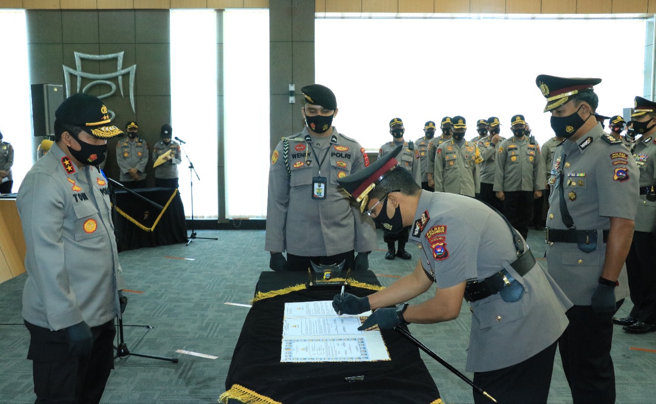 Padang, NewsHanter.com – Kapolda Sumbar Irjen Pol Drs. Toni Harmanto, MH memimpin upacara serah terima jabatan Pejabat Utama dan 7 Kapolres sejajaran di lingkungan Polda Sumbar di ruang Jenderal Soekanto lantai IV Mapolda Sumbar, Senin (31/08/20) pagi.