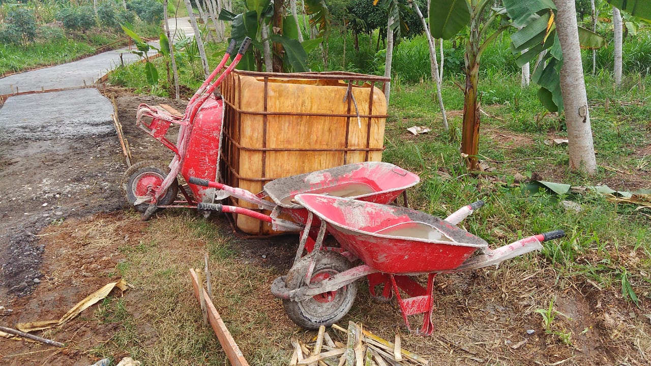 “Meskipun dengan alat seperti Gerobak dorong dan juga cangkul serta bak plastic bekas, namun dengan semangat kegotong royongan yang kita miliki ini, saya yakin semua pekerjaan dapat kita selesaikan dengan baik,” kata Mohammad Restu, Minggu (5/7/20).