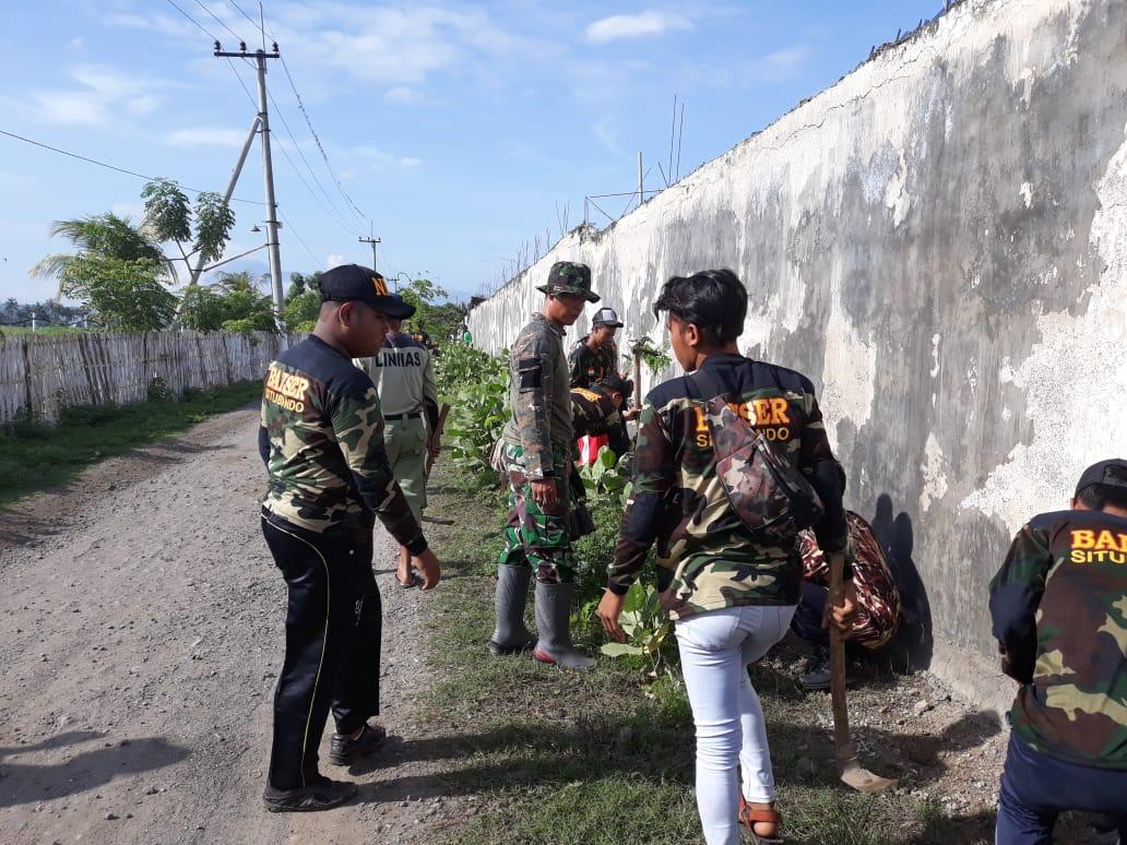 ANGGOTA KORAMIL 08 BANYUPUTIH BERSAMA MASYARAKAT DESA TLOGOSARI MEMBERSIHKAN JALAN MENUJU LOKASI TMMD KE 107