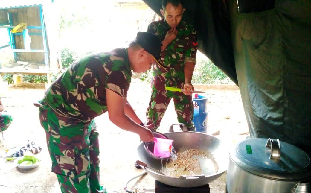 KARANGANYAR – Sebagai anggota TNI yang bertugas menjaga NKRI, Serma Sukarmin ternyata memiliki keahlian memasak layaknya koki. Hal itu terlihat saat Serma Sukarmin, bersama dengan anggota satuan tugas TMMD Reguler Ke-109 Kodim 0727/Karanganyar, di Desa Jatiwarno, yang sedang membuat masakan di dapur umum.