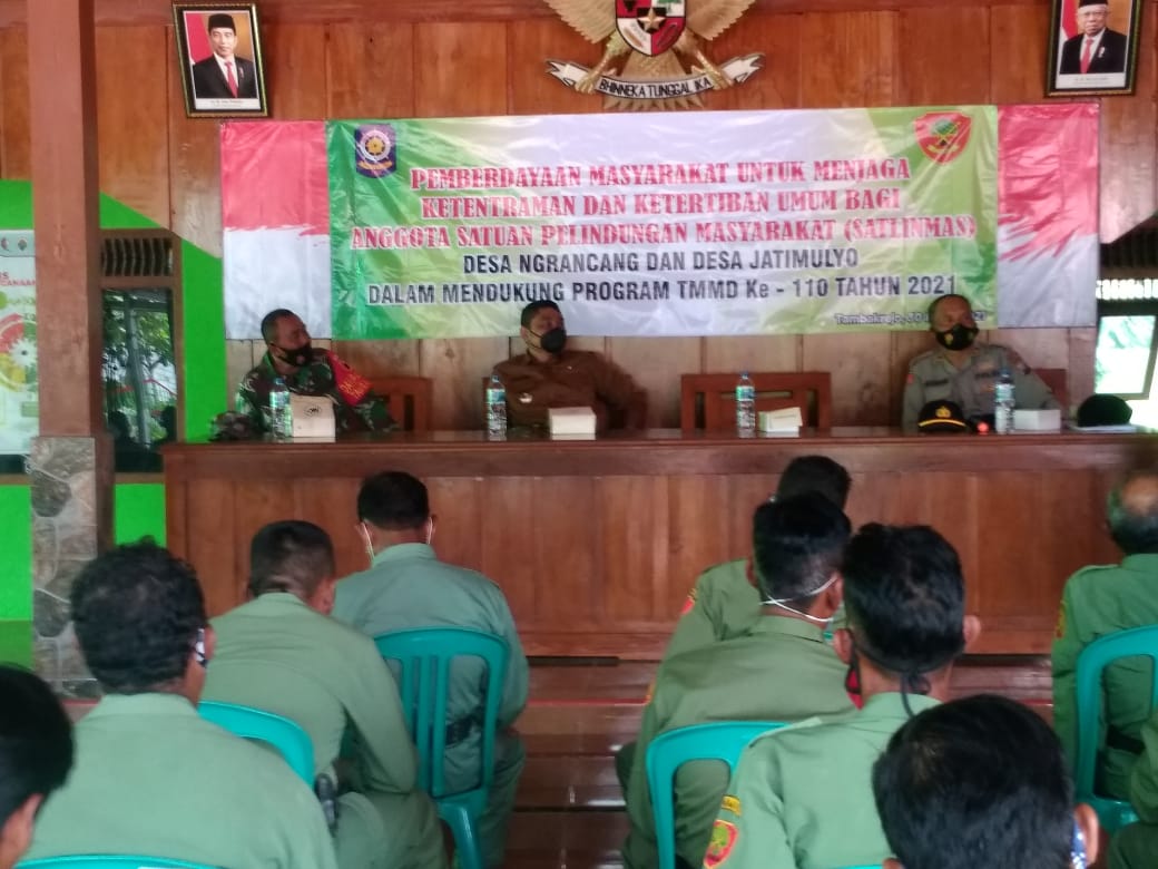 Kali ini anggota satgas TMMD ke 110 Kodim 0813 Bojonegoro Danramil Kapten Inf Jamari membantu melaksanakan kegiatan pemberdayaan masyarakat menjaga ketentraman dan ketertiban masyarakat satlinmas.