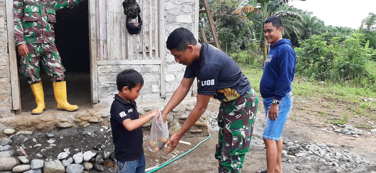 Disaat para Satgas dan Polisi serta warga dusun tersebut melaksanakan pengerjaan, tiba-tiba berlari seorang bocah kira-kira berusia 11 tahun dengan membawa bah yang dibungkus tas plastic. Sambil berlari-lari kecil, ia menghampiri anggota TNI dan memberikan bungkusan tersebut kepada Serda Rafi yang merupakan anggota Satgas TMMD dari Yonif 714/SM. Dengan beraninya dan tidak ada rasa malu ataupun takut, Ariel memberikan buah rambutan yang ditentengnya dalam tas plastic tersebut.