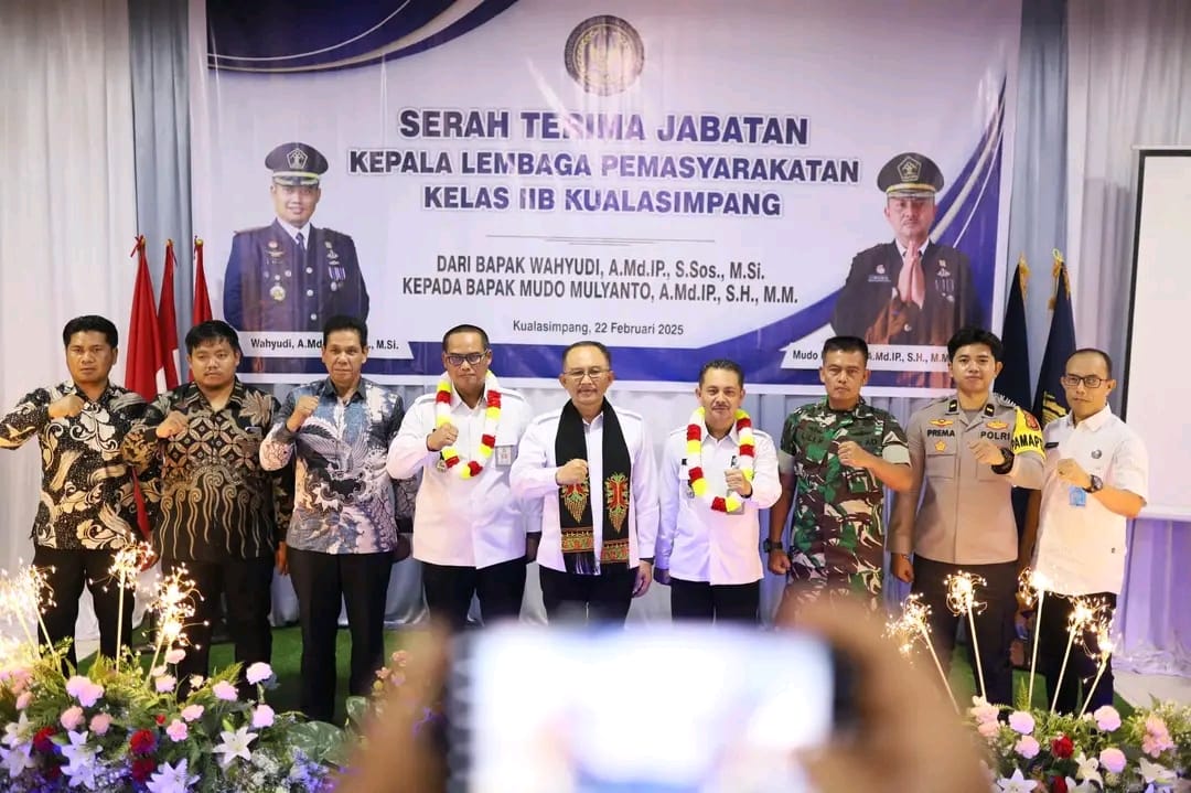 Aceh Tamiang, newshanter.com -Mewakili Bupati, Asisten Pemerintahan, Keistimewaan Aceh dan Kesejahteraan Rakyat Setdakab Aceh Tamiang, Muslizar, S.Pd, MM menghadiri proses Serah Terima Jabatan (sertijab) Kepala Lapas Kelas IIB Kualasimpang, Sabtu, (22/2/2025) di aula Lapas setempat.