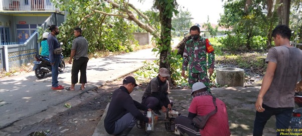 Dengan adanya laporan warga menuntut Babinsa dengan sigap dan cepat segera mendatangi tempat tersebut dan segera berkoordinasi dengan beberapa pihak karena ada juga kabel listrik PLN yang berada tepat dibawah pohon yang tumbang tersebut.