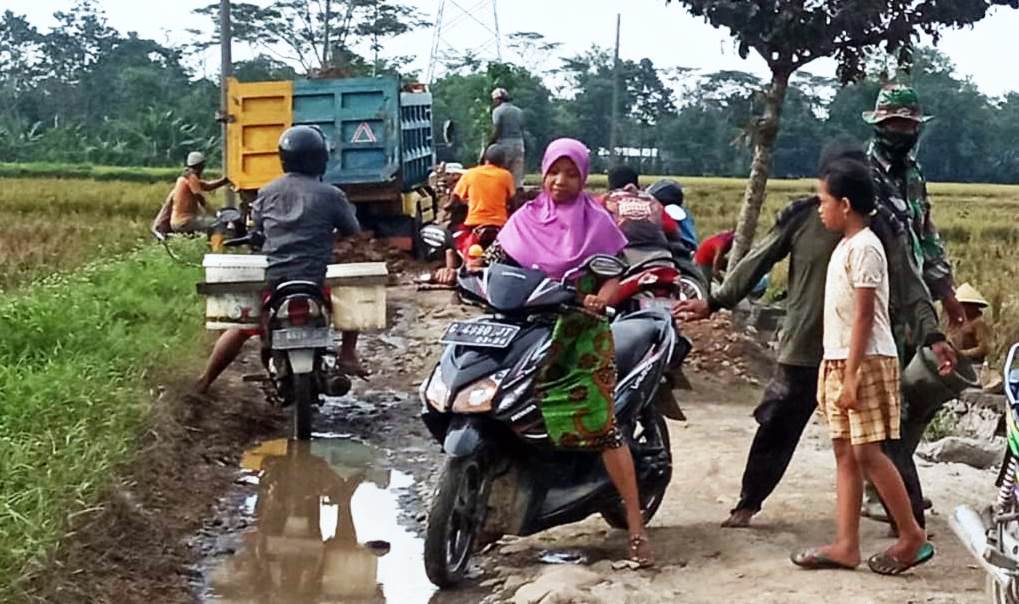 ”Karena jalannya jelek, tidak jarang beberapa warga membawa gabah dengan sepeda motor kesulitan. Untuk itu, meski sebenarnya kami sibuk mengejar target pekerjaan TMMD, tetap saja dan wajib hukumnya kami harus membantu,” papar Prada Purnomo, Senin (06/04/2020). Dikatakan, soal membantu warga yang kesulitan membawa gabah sudah menjadi rutinitas sehari-hari saat bekerja di lokasi pembangunan talud.
