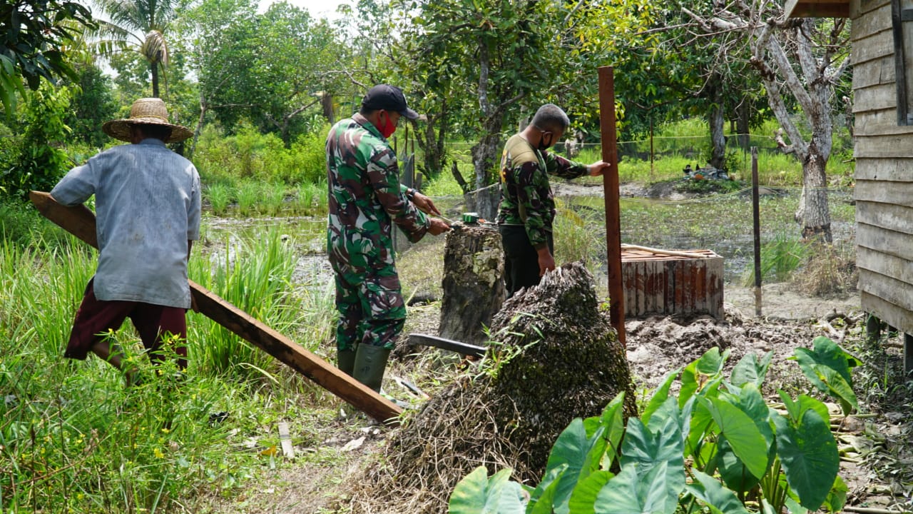 Kapuas – Desa Saka Lagun Kecamatan Pulau Petak Kabupaten Kapuas terus melakukan percepatan pekerjaan Program Pra TMMD 110 Kodim 1011/KLK yang dikerjakan oleh anggota TNI yang dibantu warga dengan gotong royong. Membantu warga kurang mampu merupakan salah satu program dari TMMD 110 Kapuas, salah satunya memberikan bantuan kepada warga yang memang sangat layak untuk mendapat bantuan tersebut. TNI terus berupaya memberikan yang terbaik kepada masyarakat dalam programnya dengan menempatkan pada sasaran yang memang sangat dibutuhkan oleh warga.