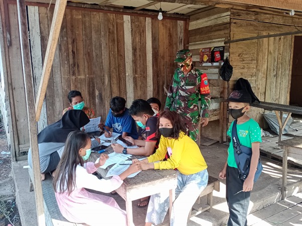 Kubu Raya – Kepedulian dalam belajar mengajar pada siswa, Babinsa Desa Sungai Kerawang Koramil 1207-11/Batu Ampar Kodim 1207/ BS Sertu Haryatin selalu aktif dan berperan dalam pendampingan proses belajar melalui daring. Jumat (11/06/2021)