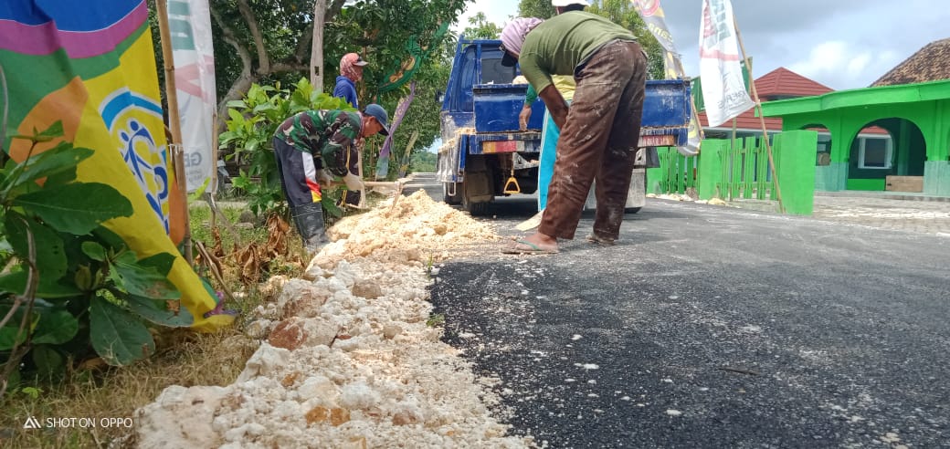 Bojonegoro – Anggota satgas TNI Manunggal Membangun Desa (TMMD) bersama warga sedang membantu pembarelan atau pemberian material di sisi jalan aspal. Material Katel ini guna untuk samping kanan kiri jalan yang sudah di aspal di kegiatan sasaran TNI Manunggal Membangun Desa (TMMD) ke 110.