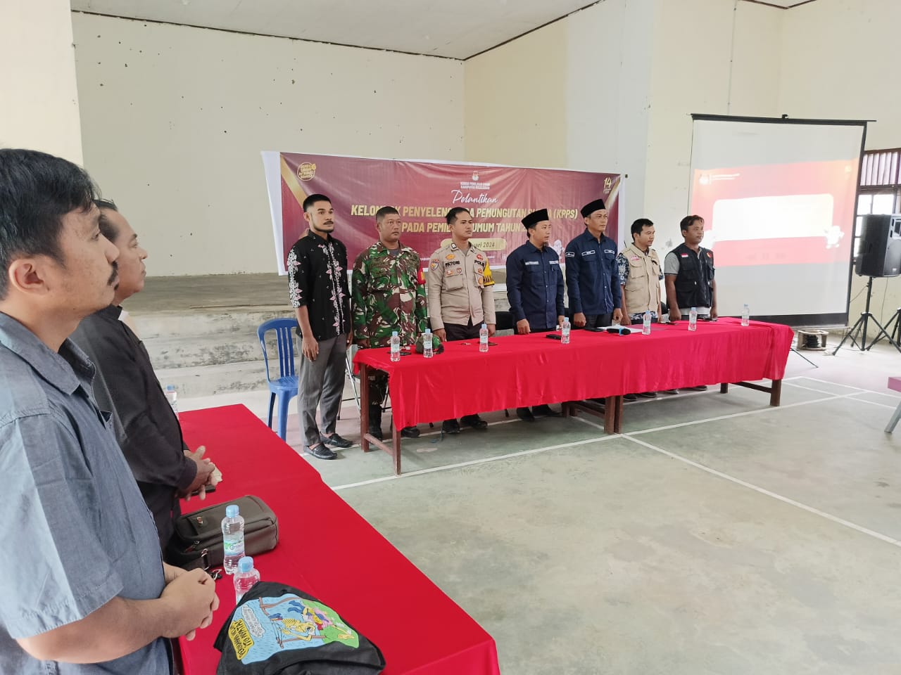 PELALAWAN, NEWSHANTER.COM-Bhabinkamtibmas Polsek Kerumutan, Brigadir Dicky Fatoni, menghadiri pelantikan dan pengucapan sumpah janji Kelompok Penyelenggara Pemungutan Suara (KPPS) Pemilu Tahun 2024.