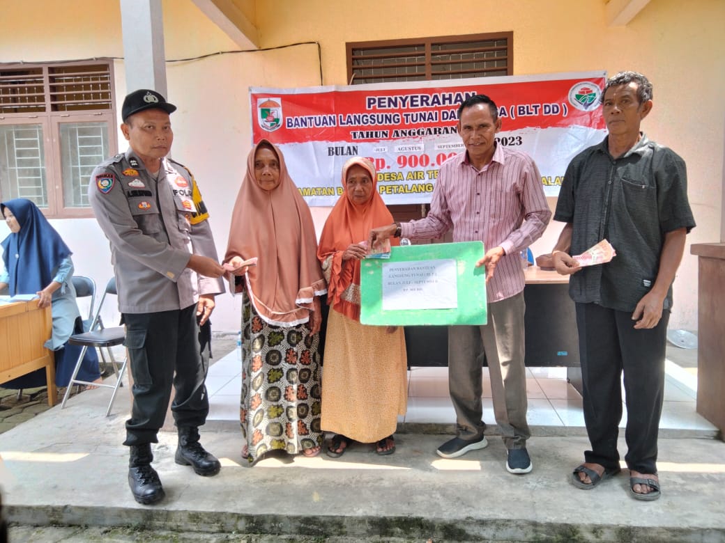 PELALAWAN, NEWSHANTER.COM – Pemerintah Desa Air Terjun Kecamatan Bandar Petalangan Kabupaten Pelalawan, melaksanakan pembagian Bantuan Langsung Tunai ( BLT ) Triwulan III Juli sampai September 2023.