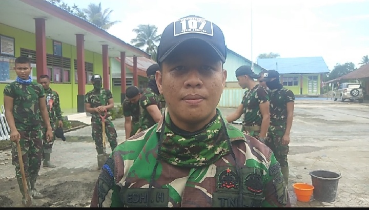 BANGGAI— Salah satu anggota Kompi Senapan C Yonif 714 Sintuwu Maoros, Praka Edhi H, merasa senang karena bisa bergabung dalam Satuan Tugas (Satgas) TMMD ke 107 Kodim Luwuk Banggai.