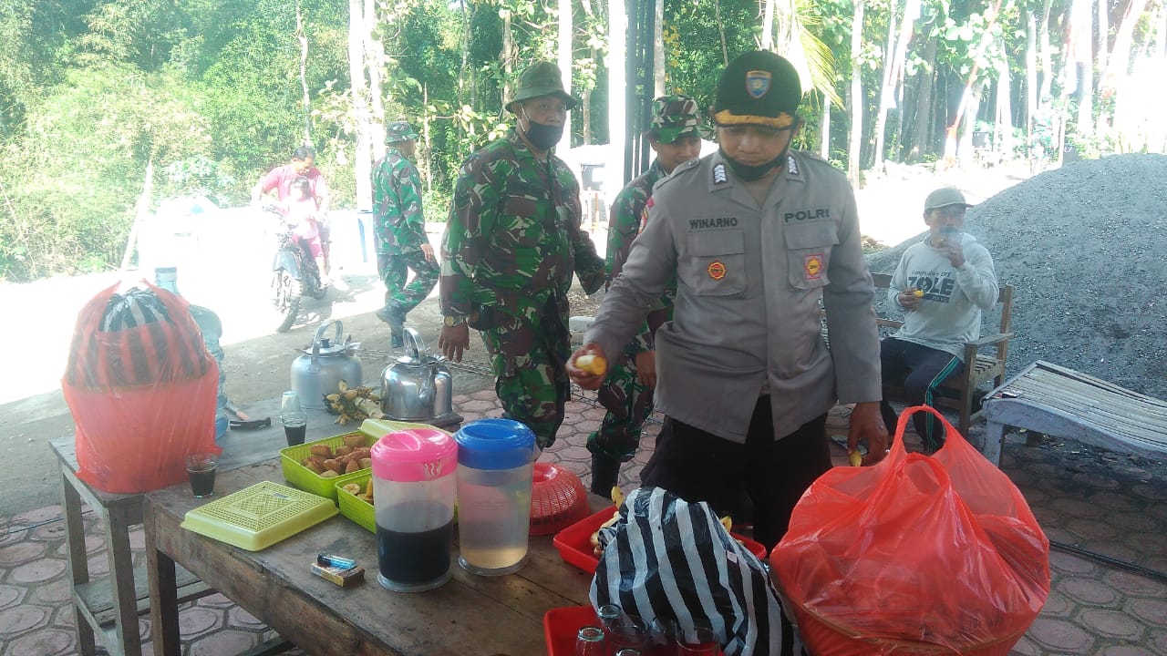 Bripka Winarnopun disaat waktu makan siang menyempatkan untuk mengambil singkong goreng yang sudah disediakan oleh warga sebagai pembuka makan karena makan singkong goreng di daerah pegunungan sangat enak untuk di makan.(*)
