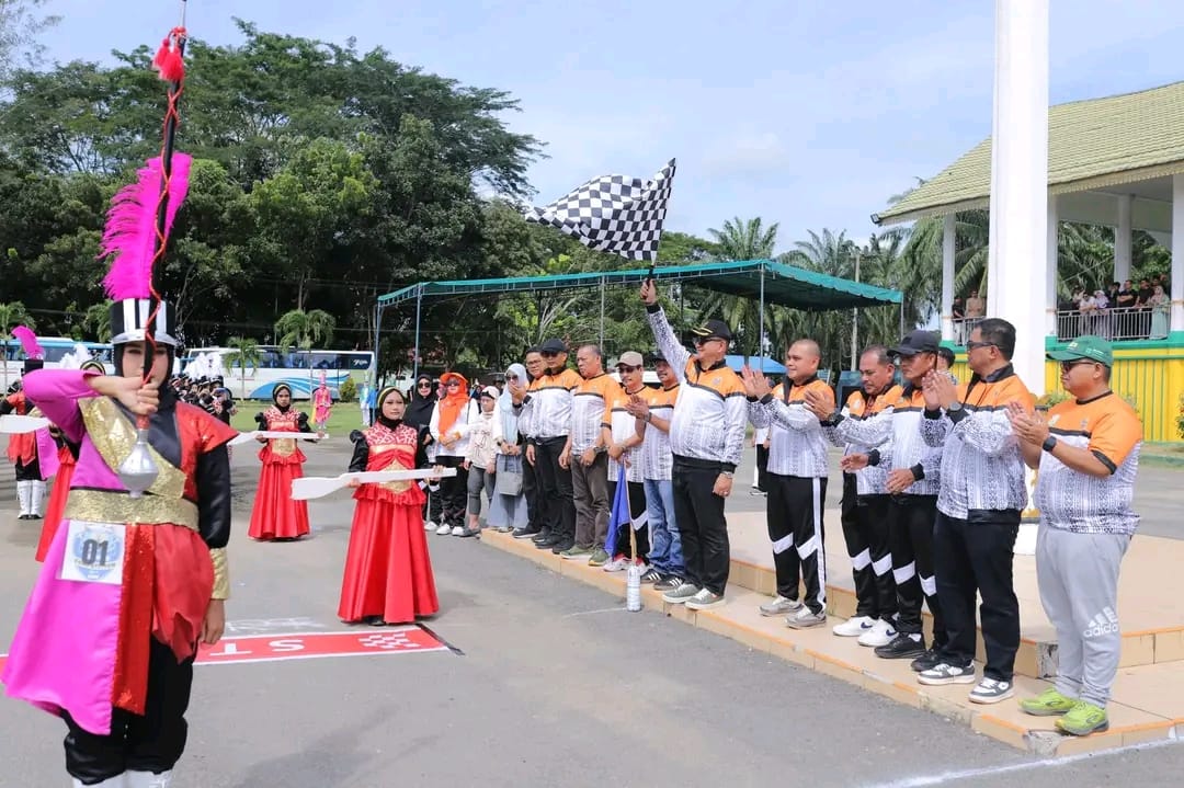 Pembukaan lomba ditandai dengan penabuhan drum oleh Bupati Armia bersama unsur Forkopimda, Plt. Sekda, dan Ketua Koni Aceh Tamiang.