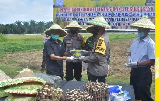 Ditengah pandemi Covid-19 yang terjadi,j tidak menyurutkan semangat Pemerintah Aceh Tamiang untuk meningkatkan ketahanan pangan di Kabupaten Aceh Tamiang. Setelah kemarin Bupati Aceh Tamiang Mursil, SH, M. Kn melakukan penanaman bibit di Kecamatan Manyak Payed, Bupati Aceh Tamiang kembali menyerahkan bibit ikan, stek ubi kayu dan benih jagung kepada Kapolres Aceh Tamiang untuk dibudidayakan Jumat, (12/06/2020).