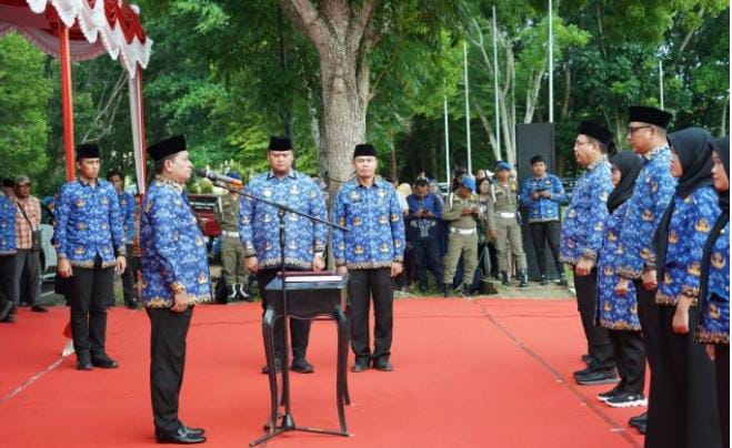 Banyuasin, newhanter.com– Bupati Banyuasin Dr. H. Askolani, S.H., M.H., melakukan rotasi sejumlah Pejabat Eselon II atau Pejabat Pimpinan Tinggi Pratama di lingkungan Pemerintah Kabupaten Banyuasin, Senin (20/10/2025). Setidaknya ada 17 Pejabat Tinggi Pratama yang dilantik yang dipusatkan di lapangan upacara Pemerintah Kabupaten Banyuasin.