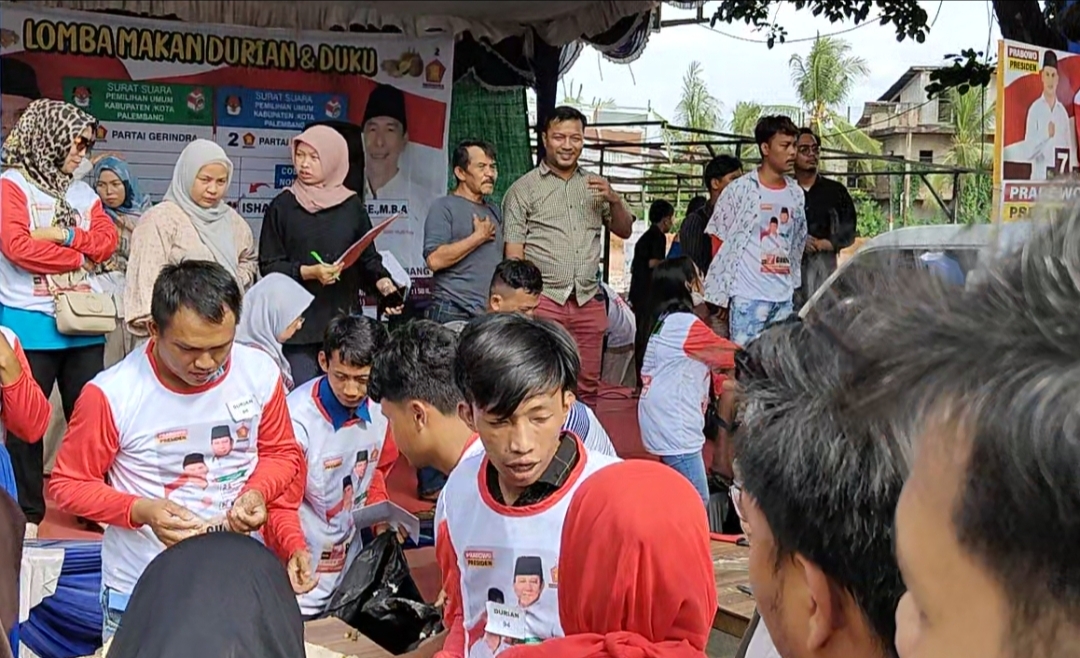 Palembang, newshanter.com – Ratusan warga di kecamatan Ilir Barat I dan Ilir Barat mengikuti lomba makan Durian dan Duku yang diselenggarakan oleh Caleg DPRD Sumsel Dapil Sumsel 1 H. Ishak Yulian Yusuf, SE, MBA dengan no.urut 4 dan Caleg DPRD kota Palembang Dapil 1 Gumanti dengan no. urut 7 menggelar lomba makan Durian dan Duku yang diadakan di Bengkel Pass jalan Demang Lebar Daun Palembang, Sabtu (10/2/2024).