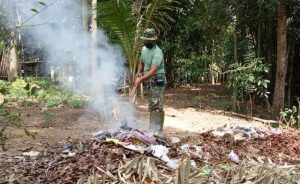 Anggota Satgas TMMD Reguler Pekalongan Terus Pelopori Kebersihan Lingkungan