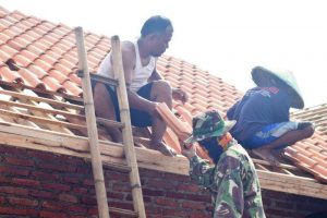 Hari Keempatbelas Rehab RTLH TMMD Reguler, Rumah Supardi Pasang Genteng