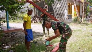 Meski Beresiko, TNI dan Warga Terus Kebut Perehaban Rumah Warga