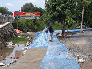 Warga Manfaatkan Plastik Terpal Bekas Penutup Jalan