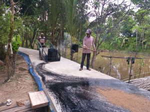 Satgas Siramkan Aspal Cair Untuk Lebih Memperkeras Jalan Usaha Tani Desa Saka Lagun