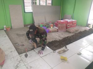 Serda Pahli Terlihat Seorang Ahli Pertukangan, Saat Pasang Keramik Mushola