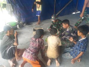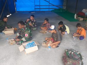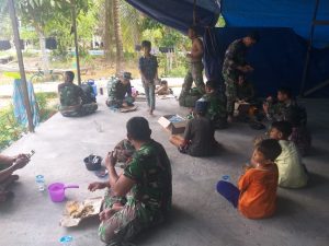 Kebersamaan Satgas TMMD Ke 110 Bersama Anak Desa, Sesaat Sebelum Makan Bersama
