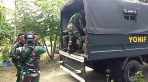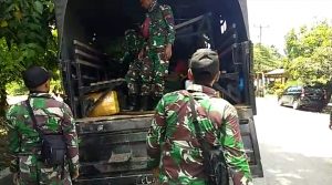 Anggota TNI Mulai Menata Barang-Barangnya ke Dalam Truk