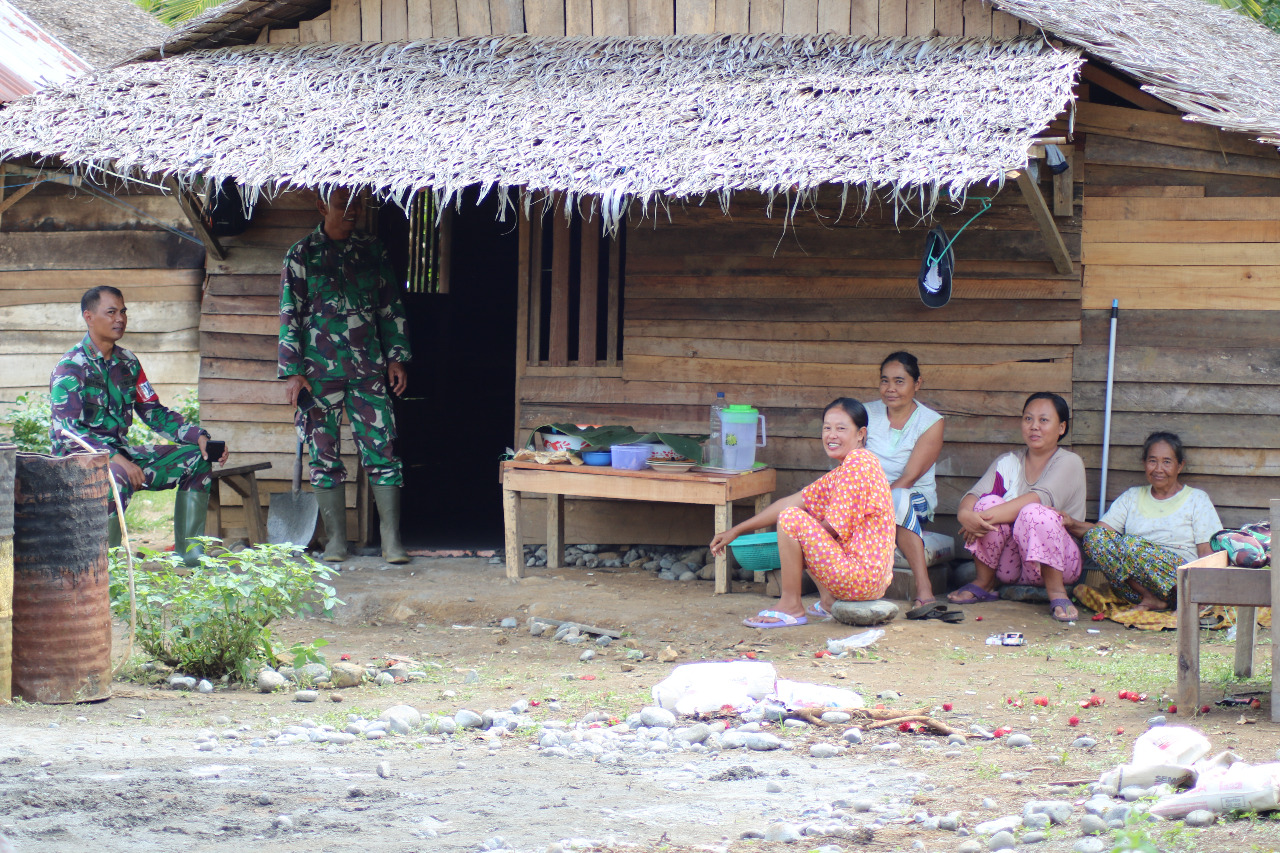 BANGGAI – Disela-sela kegiatan Bhakti Sosial (Baksos), TNI Manunggal Membangun Desa (TMMD) ke -107 oleh TNI Kodim 1308, Desa Argakencana, Kecamatan Moilong, Minggu siang (22/03/2020). Personil Satgas TMMD dan Bhabinkamtibmas Polsek Toili melakukan sambang masyarakat guna mensosialisasikan tentang kebersihan lingkungan.