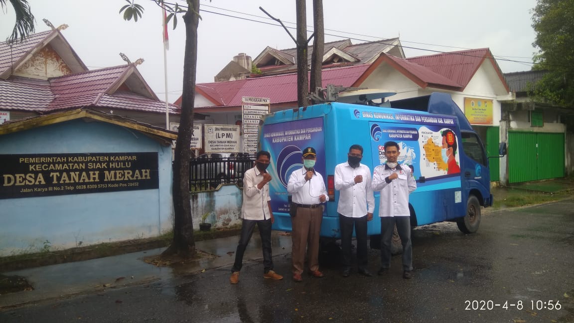 Pada hari ini, rabu tanggal 8 April 2020 Arizon mengintruksikan tim sosialisasi Diskominfo dan Persandian Kabupaten Kampar ke Desa-desa di Kecamatan Siak Hulu yang mana saat ini ada 1 orang yang telah terjangkit positif corona di wilayah tersebut.