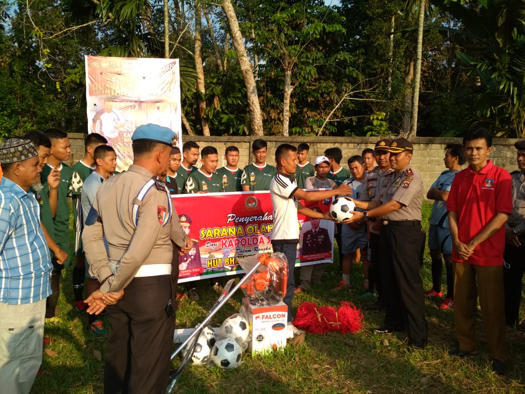 Berkaitan dengan hal tersebut, di momentum HUT Bhayangkara ke 73 ini, Irjen Pol Drs Fakhrizal, M.Hum memberikan sejumlah bantuan 5 buah Bola Kaki merk Mikasa, 2 set jarring gawang dan 1 set mesin pemotong rumput kepada pengurus Lapangan Bola Kaki Rajo Daulat Nagari Sungai Duo.