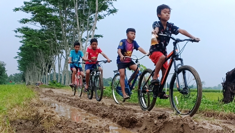 Seperti yang dikemukakan Andi (11), salah satu murid SD 2 Pantirejo, mengatakan, selama ini karena jalanan jelek, saat dirinya main bersama teman-teman, bersepeda misalnya, bergulat dengan jalan yang berlumpur.