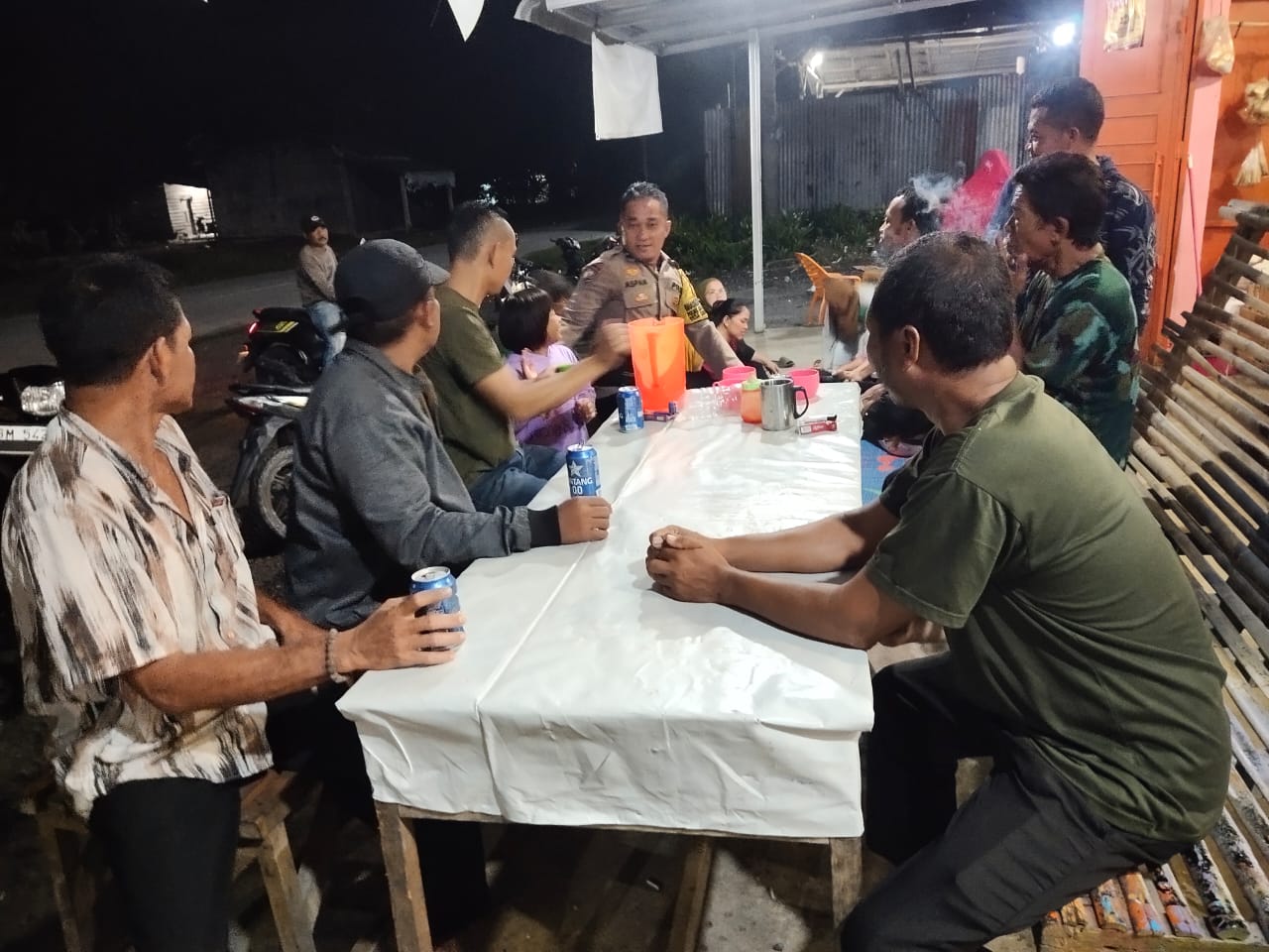 PELALAWAN, NEWSHANTER.COM-Dalam rangka menciptakan suasana Pemilu Damai 2024 yang sejuk, aman, dan kondusif, Bhabinkamtibmas Desa Lubuk Ogung, Aipda Aspan Hari, melakukan cooling system dengan mengunjungi warga yang berkumpul hingga larut malam di sebuah warung, Sabtu (27/1/2024).