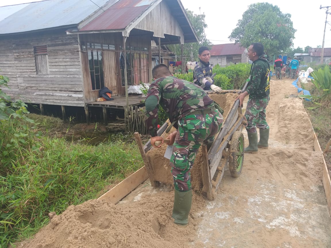 Tidak terkecuali di pelaksanaan program TMMD Reguler 110, Kodim 1011/KLK yang sedang membangun jalan usaha tani sepanjang 1200 meter, beserta sarana penunjangnya seperti pembangunan Mushola, serta pembangunan jamban dan jembatan.