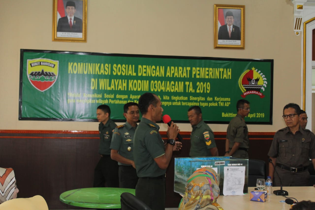 Bukittinggi,News Hanter.com- Dalam rangka meningkatkan hubungan Komunikasi Sosial (Komsos), Kodim 0304/ Agam melaksanakan kegiatan Komunikasi Sosial (Komsos) TNI dengan aparat Pemerintahan Kota Bukittinggi dan Kabupaten Agam di Aula Makodim 0304/Agam, Selasa (16/4/19)