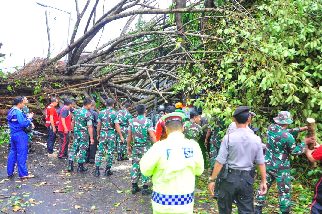 “Kami fokus di Jalan Sumatera, karena lumayan parah. Selain menutup jalan, pohon tumbang juga menimpa teras dua rumah, kata Dandim 0808/Blitar saat di lokasi kejadian.
