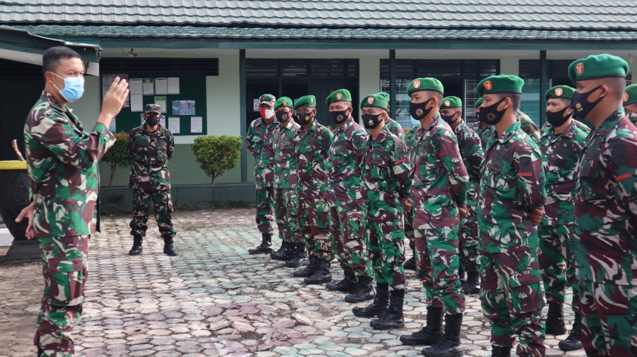 Dandim 1011/KLK, Letkol Inf. Ari Bayu Saputro mengambil alih pasukan dan memimpin pelaksanaan apel tersebut.