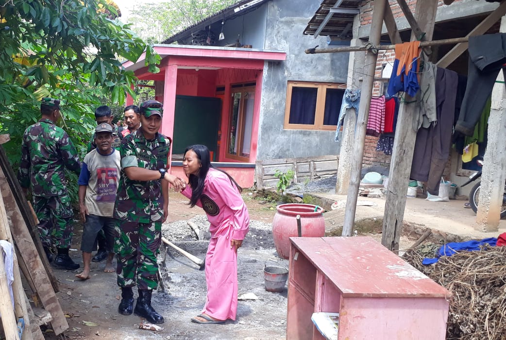 KUDUS – Komandan Satgas TMMD (TNI Manunggal Membangun Desa) Letkol Arm Irwansah S.AP, mengunjungi rumah Bapak Sulkan di Desa Kedungsari, Kecamatan Gebog, Kabupaten Kudus. Orang nomor satu di Kodim 0722 Kudus ini dalam kunjungannya disambut putri Sulkan yang rumahnya tengah direnovasi oleh sejumlah prajurit.