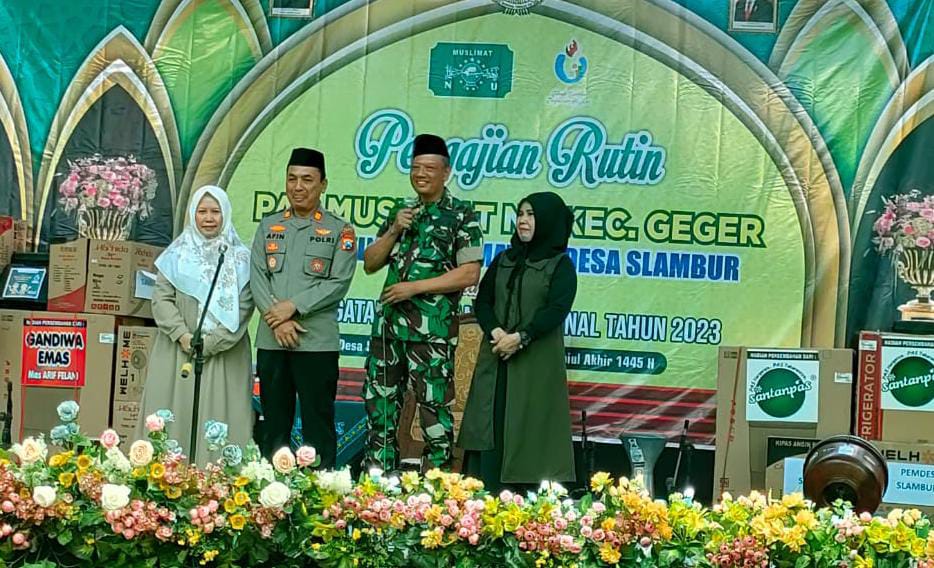 Sementara itu, Danramil 11/Geger Kapten Inf Muslikin dalam kesempatan tersebut menyampaikan, “Ucapan terima kasih atas undangannya di acara pengajian rutin ini sehingga dapat lebih mempererat tali silaturahmi antara Muspika dengan warga masyarakat Desa Slambur dan sekitarnya.