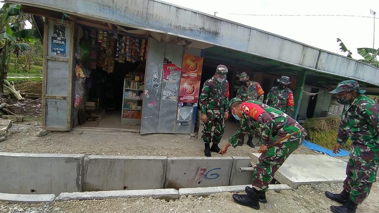 Saat di Posko TMMD, Danrem juga memberikan sembako secara simbolis kepada warga Desa Ngrancang, kecamatan Tambakrejo, Bojonegoro Serta meninjau pelaksanaan kegiatan yang dilaksanakan oleh Satgas TMMD.