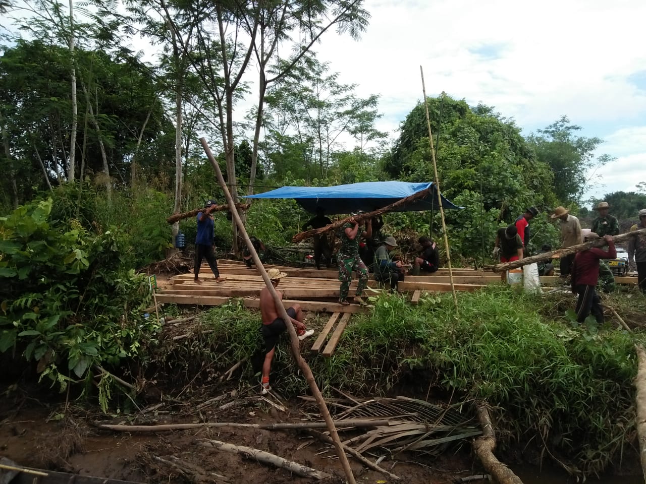 Kapuas, TNI dan warga terus kerja ekstra agar segera terwujudnya jembatan yang telah digarap demi kemajuan dan kesejahteraan. Material kayu yang sudah berada dilokasiyang tertata rapi kini mulai dikerjakan dengan gotong royong.